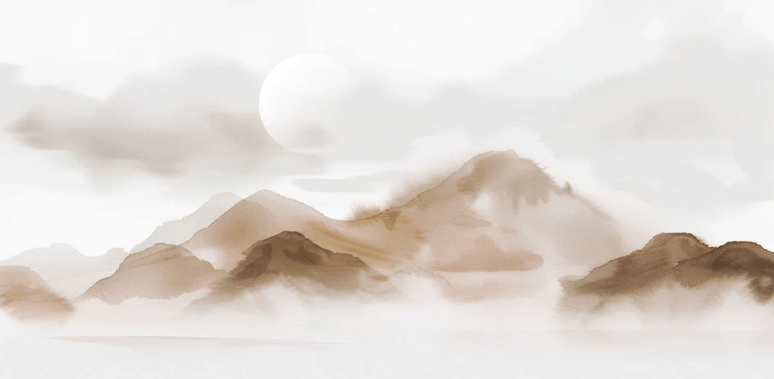 Wallpaper with misty mountains – Sepia glow