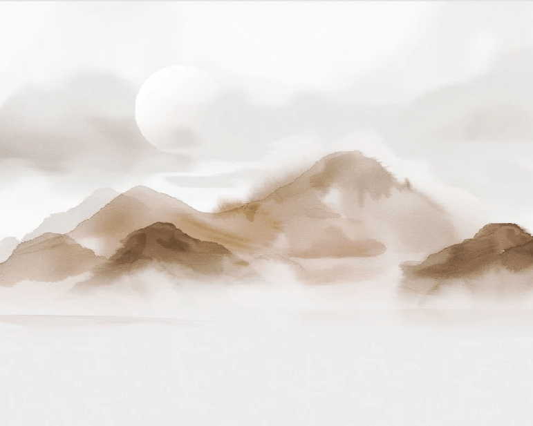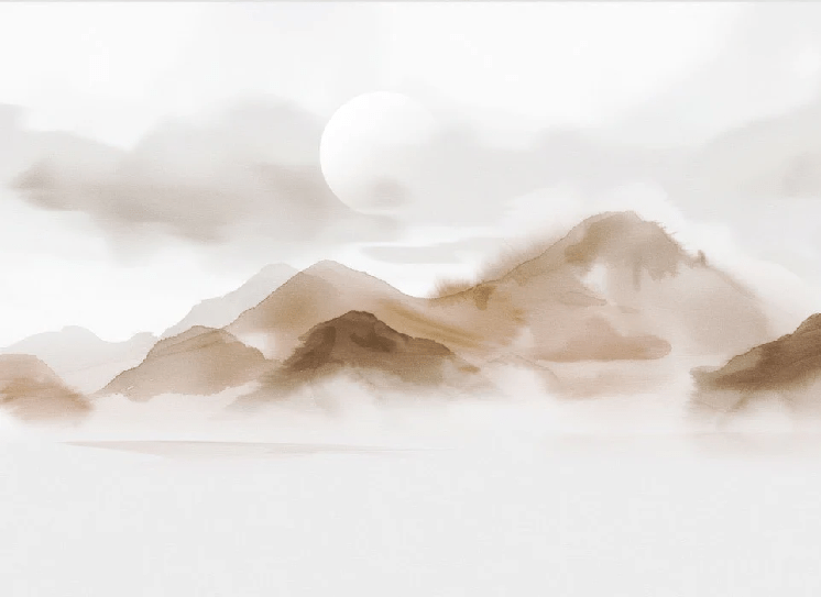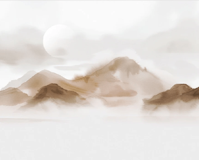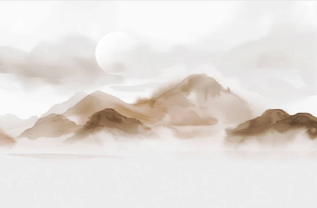 Papier peint montagnes voilées – Lueur sépia