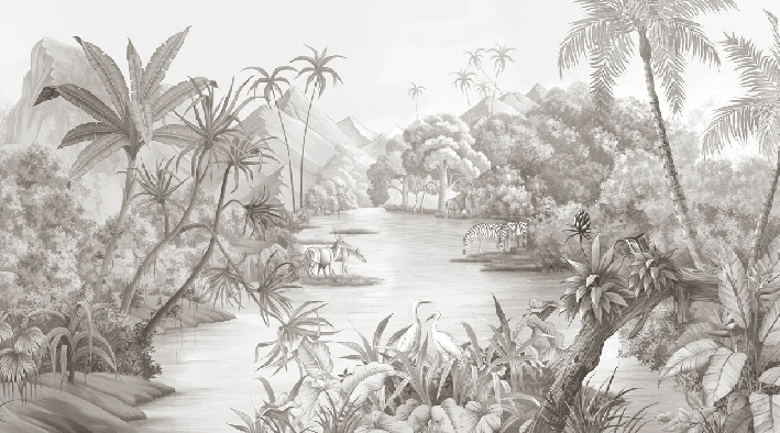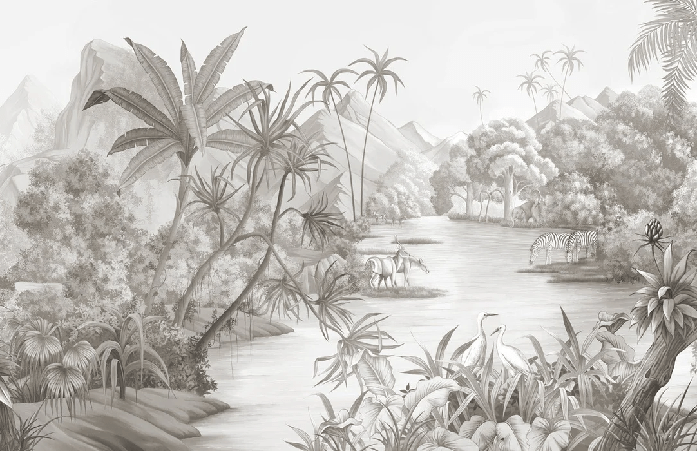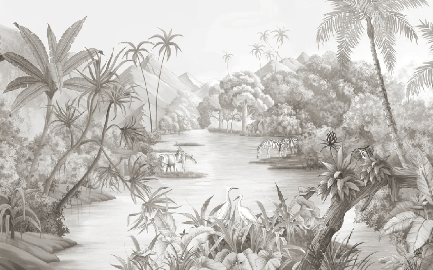 Picturesque jungle panoramic wallpaper
