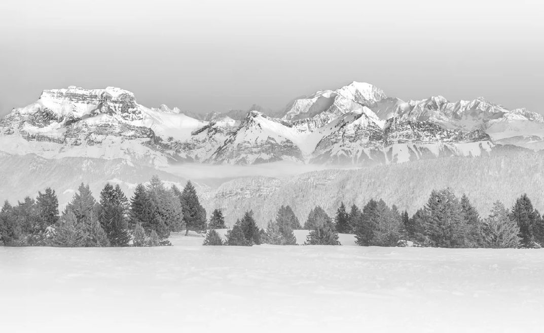 Mont Blanc in the mist black and white wallpaper