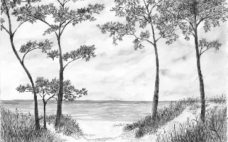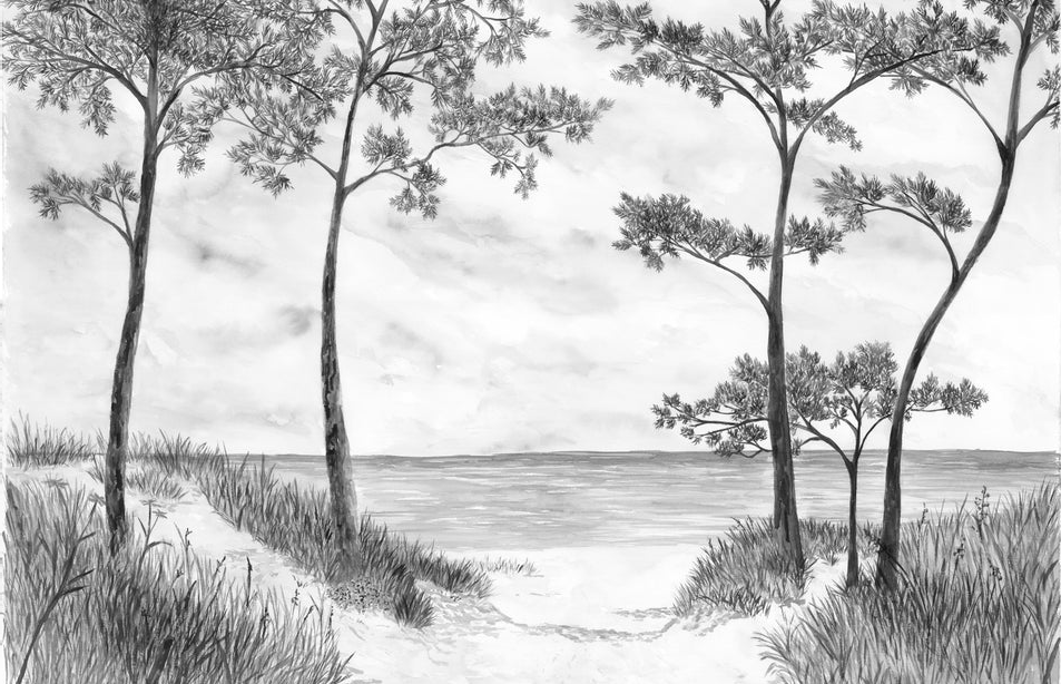 Papier peint Pins maritimes et dunes - Noir et blanc