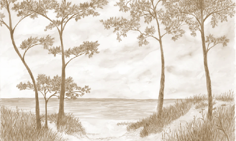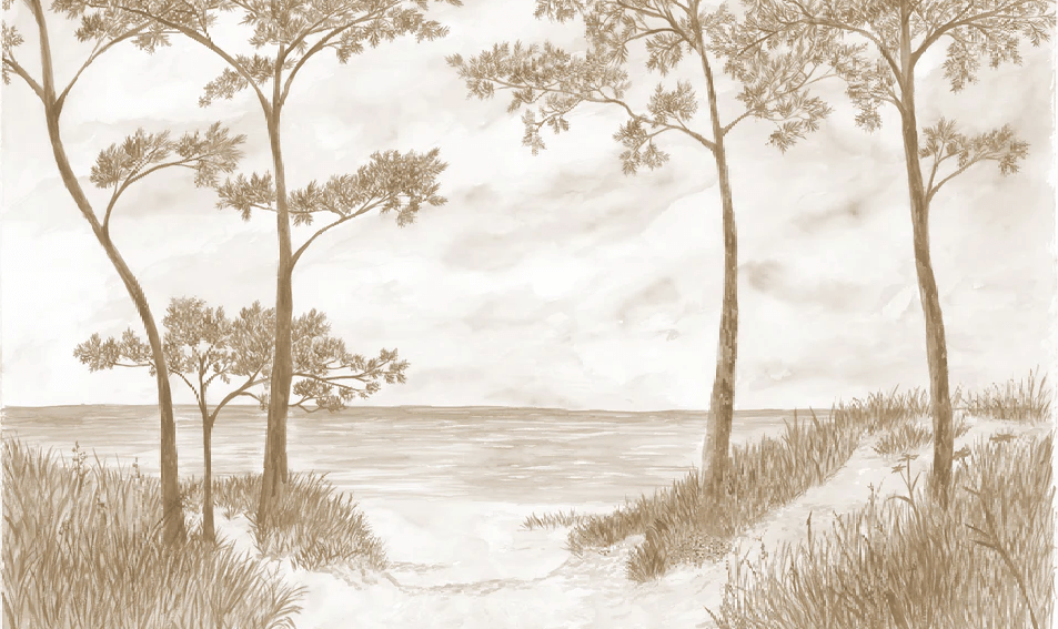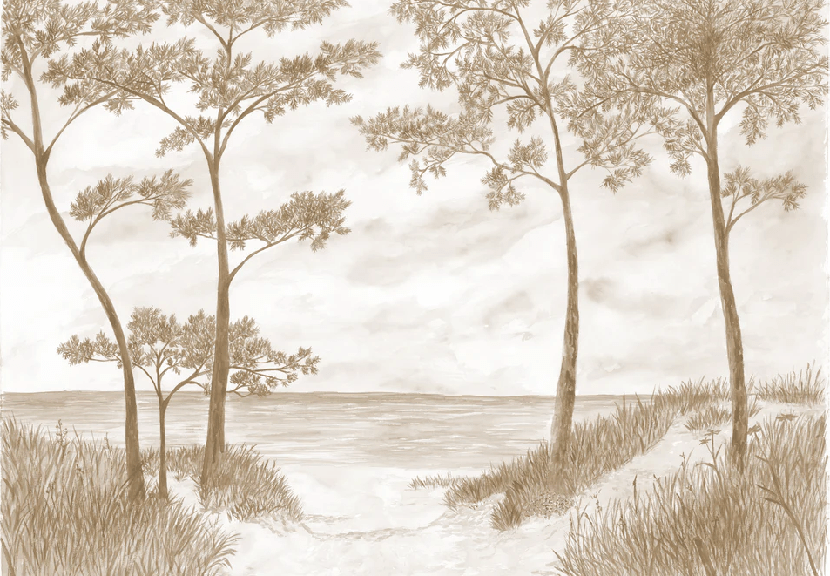 Maritime Pines and Dunes Wallpaper - Sepia
