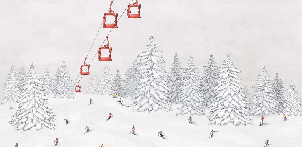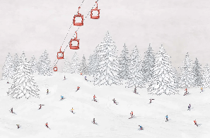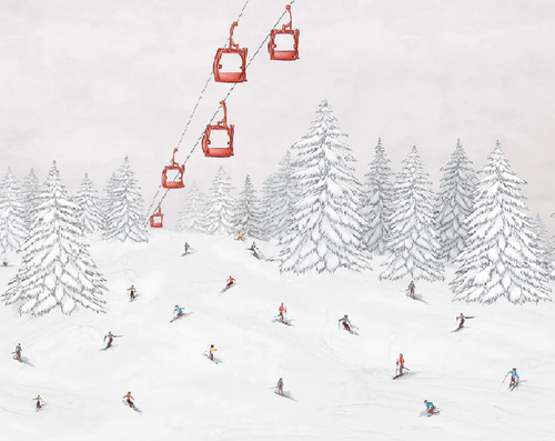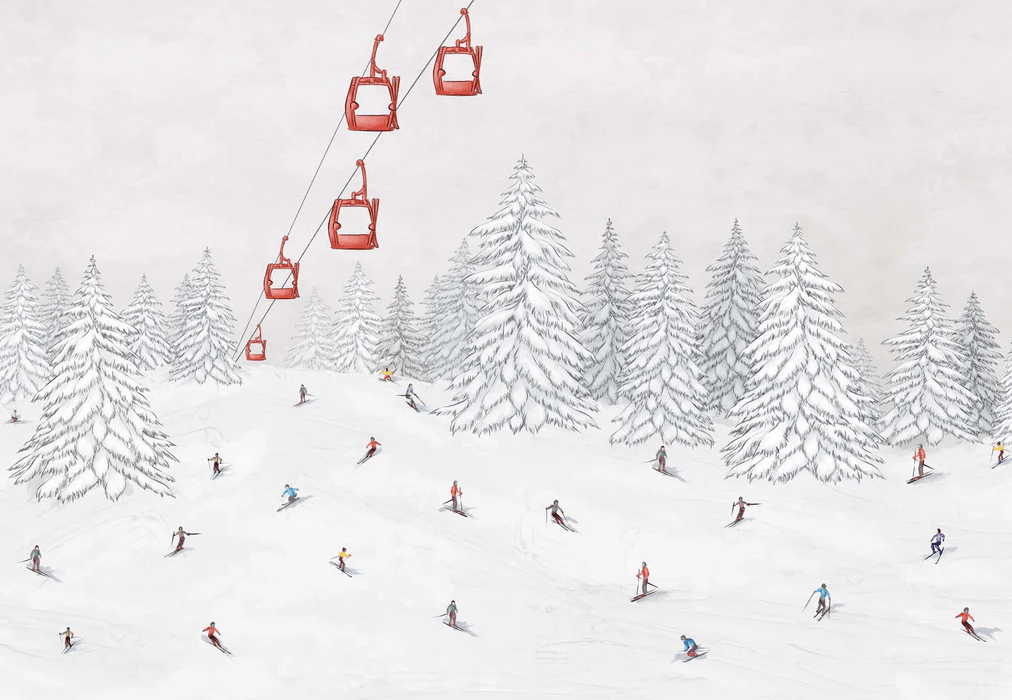Papier peint télécabine skieurs colorés
