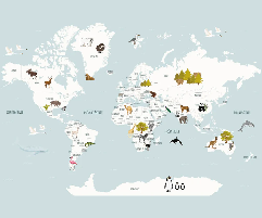 Children's French world map wallpaper grey