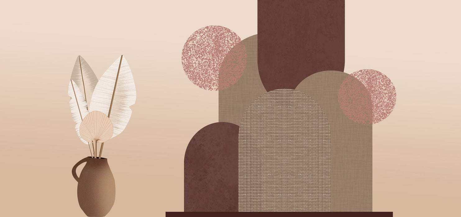 No need to add decorative objects, this Art Décoratif design wallpaper will be the centerpiece of your interior. On this wall panel, you'll find a trendy ceramic vase, dried banana leaves and refined arches. A wall creation with a rattan effect and pantine paint that will add cachet to your ambience. Dress your walls with a panoramic wallpaper that makes your interior sublime. Easily create a unique interior worthy of a grand hotel with our made-to-measure wallpaper. A touch of art deco design and graphics.