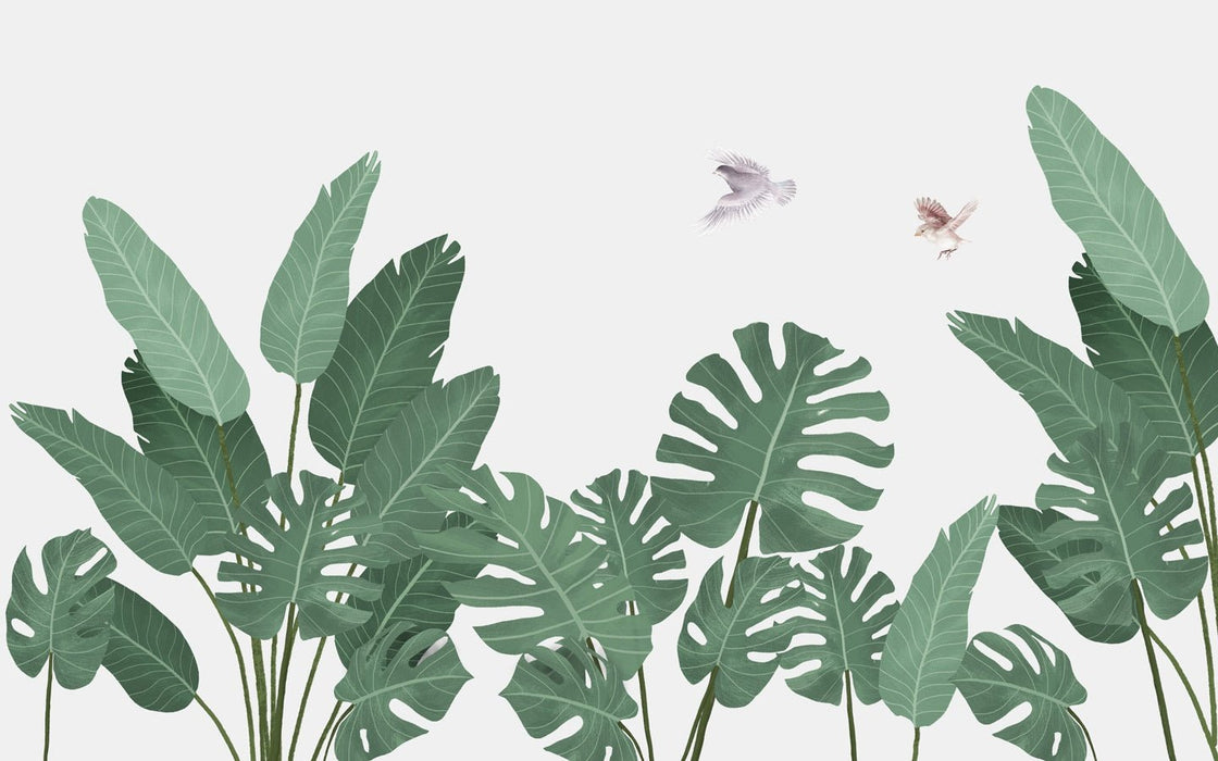 Discover our banana tree essence jungle wallpaper. This trendy jungle wallpaper with a tropical jungle feel is ideal for a bedroom, living room or office. An exceptional wall decor that will plunge your home into the heart of nature and create an environment conducive to relaxation. A fresh and elegant custom panoramic wallpaper to personalize your room. Let yourself be carried away by this wave of jungle addict wallpaper.