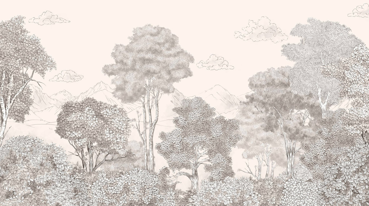 Beige panoramic Forests and Mountains wallpaper