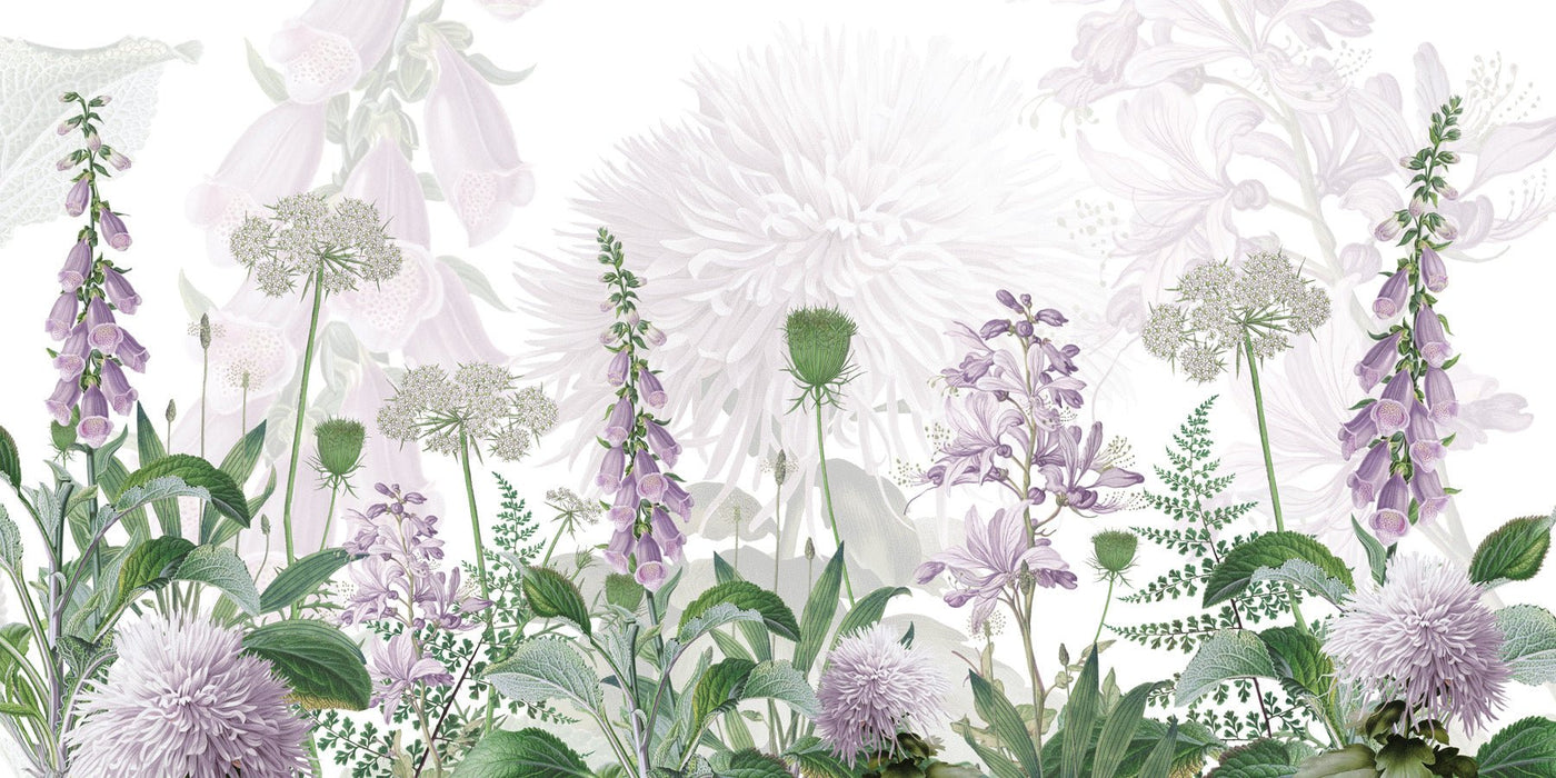 Discover our beautiful danse des clochettes floral wallpaper, designed to bring an atmosphere of softness and elegance to your interiors. This floral wallpaper will captivate your eye with its pastel shades of purple and green, creating a soothing, harmonious ambience.