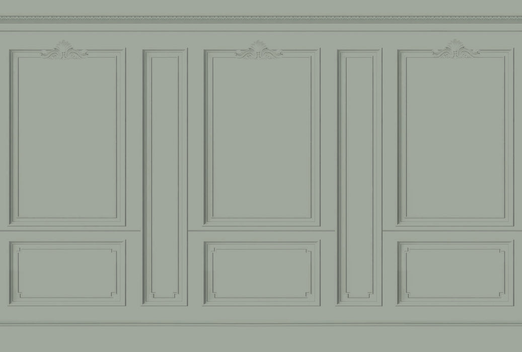 Haussmann Vert de gris wallpaper decorates interiors with elegance, its trompe l'oeil pattern imitating wood paneling is both sober and chic. The quality of the moldings is exceptional. This made-to-measure non-woven wallpaper will impress your guests, and will find its place in every room of your home, as well as in hotel rooms and restaurants. Your interior will gain in perspective and relief with this exceptional wall panel.