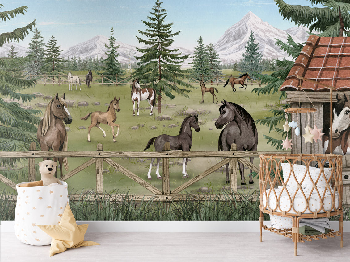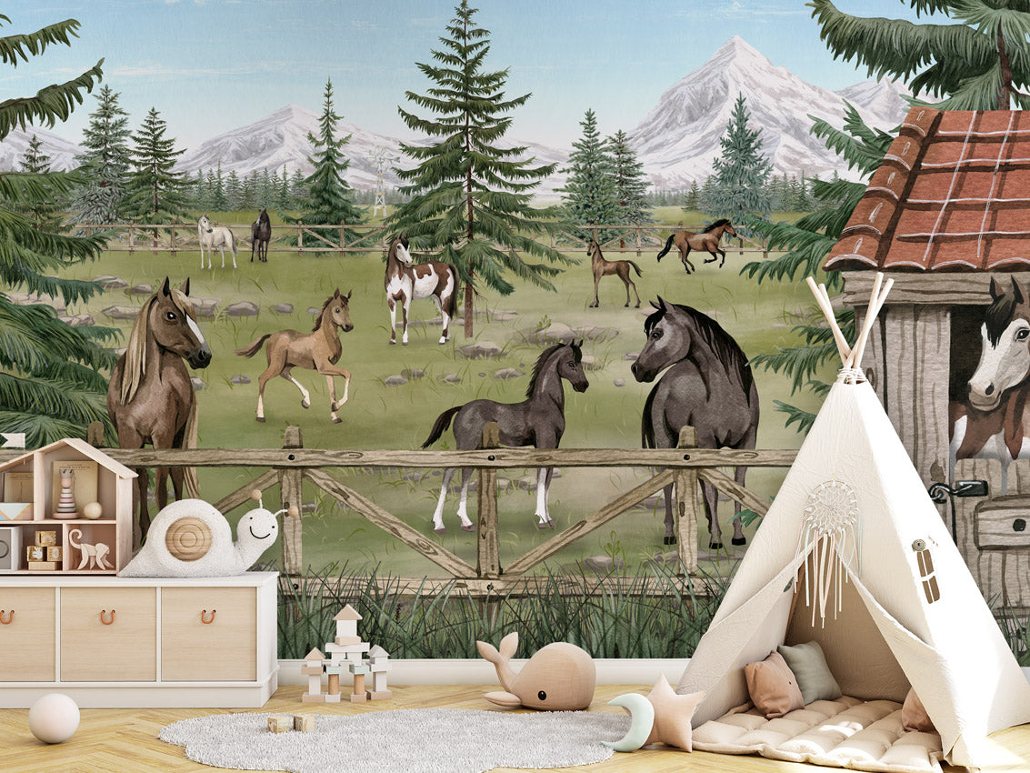 Papier peint chambre enfant - Le havre des chevaux