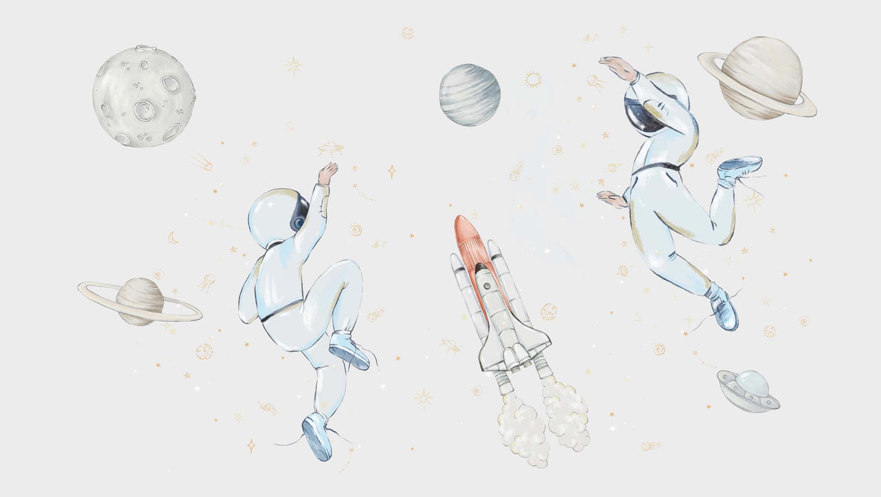 Decorate your child's or baby's bedroom or playroom with astronauts in blue space wallpaper! This panoramic wallpaper fascinates our toddlers, who one day dream of going into space and becoming an astronaut. So why not give them an eyeful with this panoramic wallpaper? Thanks to your new wall decoration, the stories and dreams will be even more exciting, and his imagination will grow by leaps and bounds. Panoramic wallpaper can help your child develop his creativity.