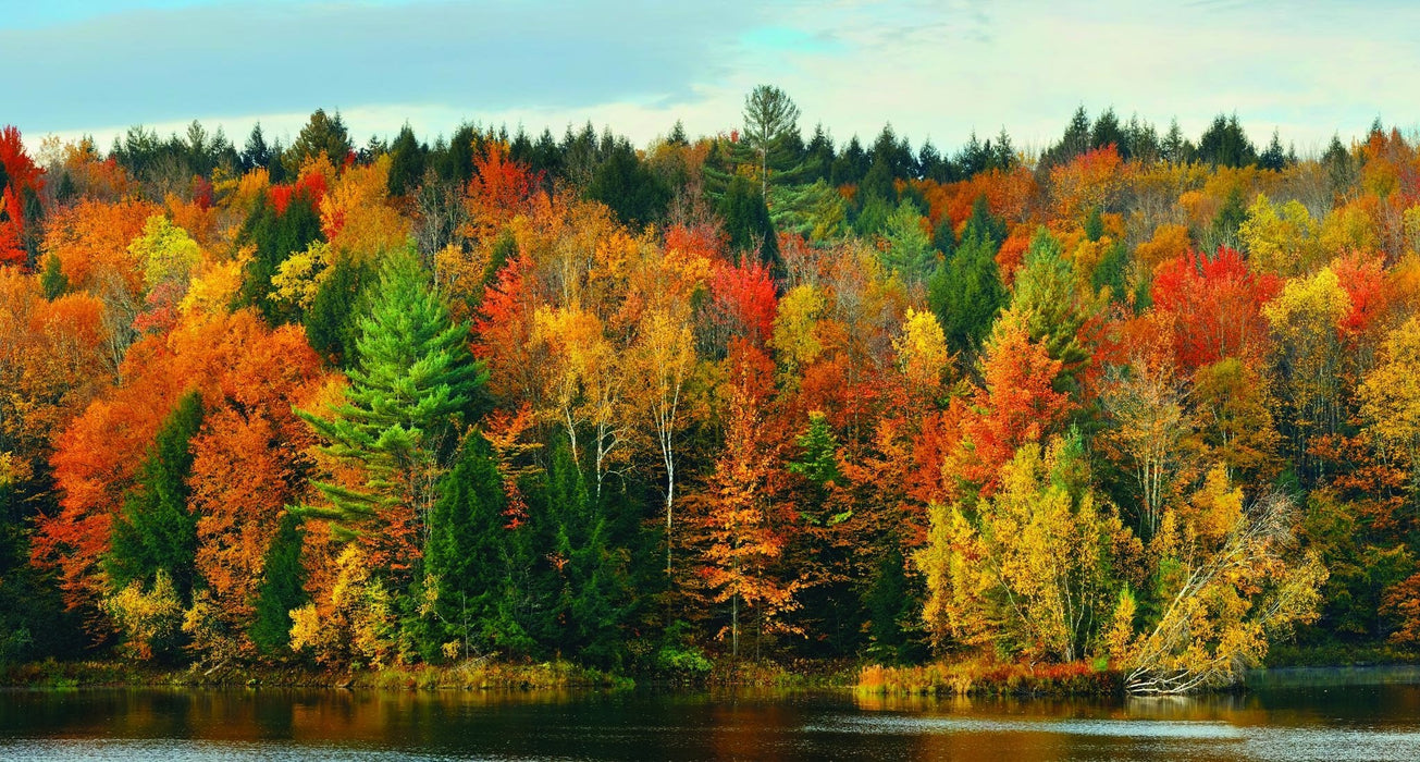 Our panoramic forest wallpaper in autumnal hues will enhance your interior with its warm, welcoming colors, creating a zen-like, poetic ambience. The realism of this XXL wall decor is breathtaking, and you'll feel as if you're living on the edge of the woods, on the shores of the lake and surrounded by the scents of the forest.