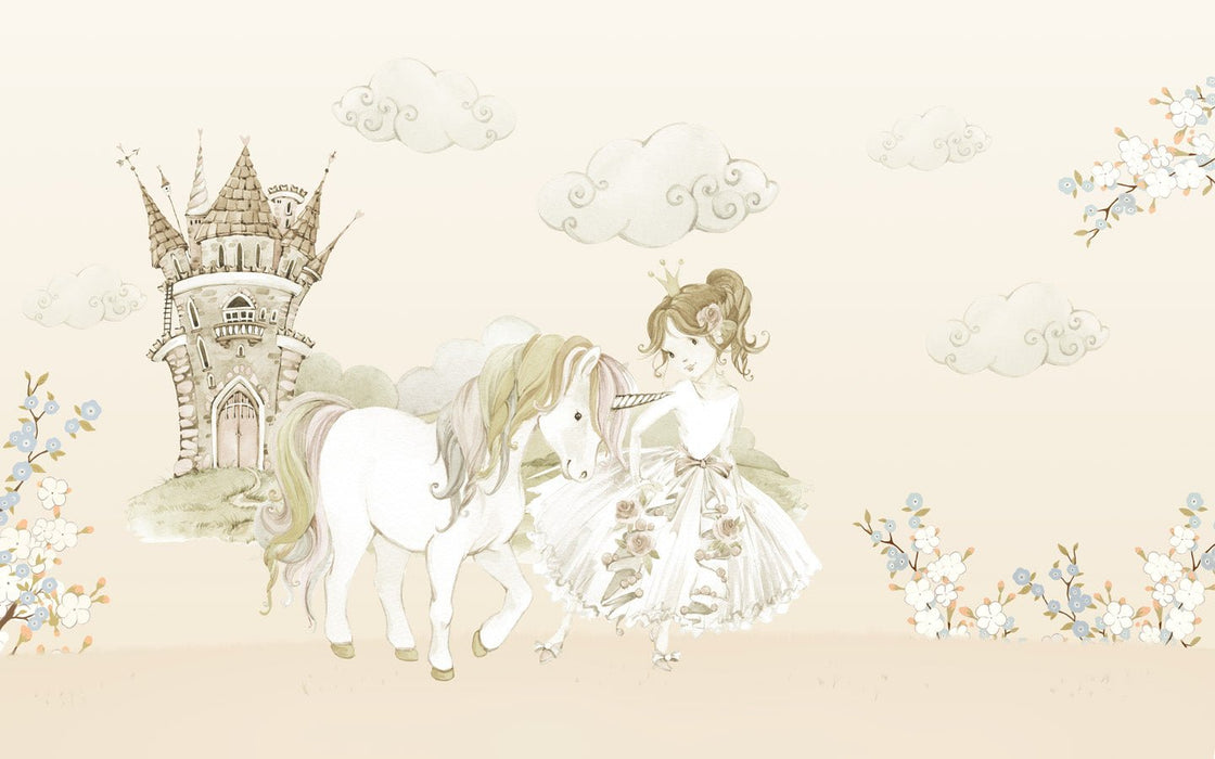 Your child will be fascinated by this magnificent unicorn princess wallpaper in pastel colors. Licorne, princess, castle are united to create a magical decor. This wallpaper will brighten up your child's room and bring softness and relaxation. Without a doubt, this wall decor will transport your child to his favorite imaginary world!