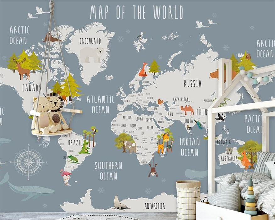 Create a captivating world for your child with this panoramic world map wallpaper!