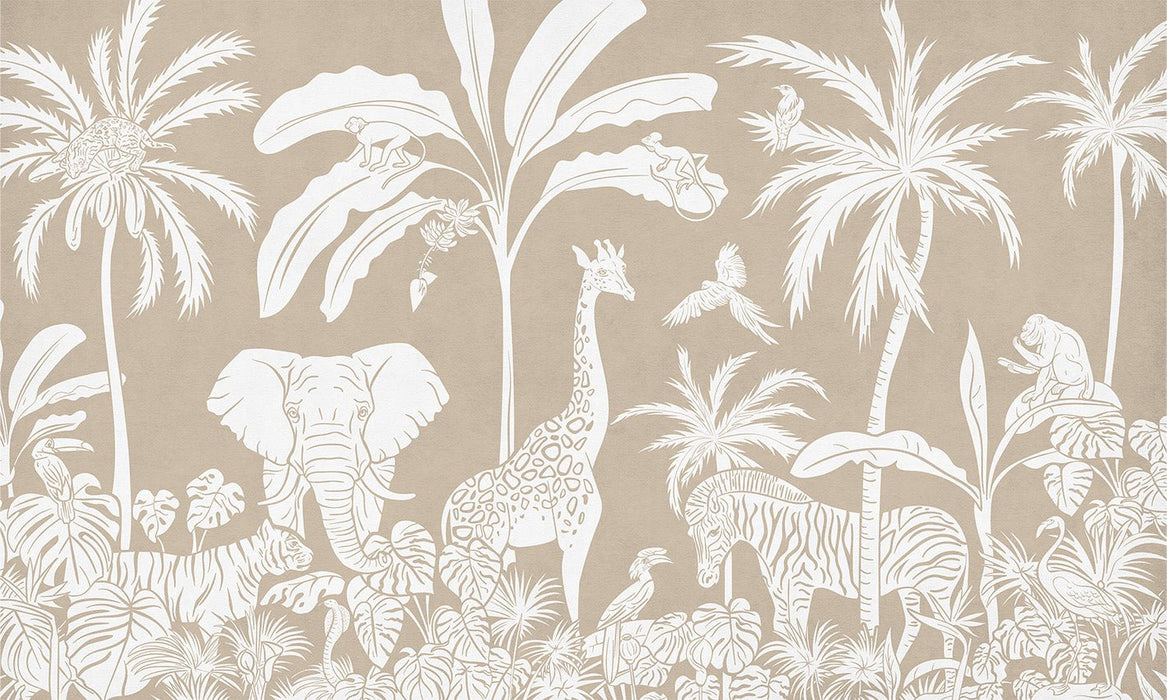 Safari monochrome beige children's wallpaper is a soft, endearing wall decoration. Perfect for decorating your baby's or toddler's bedroom, this beige children's wallpaper lets your children discover the beauty of savannah animals. Its beige color softens the atmosphere to soothe your child and make it easier to fall asleep. Discover the world of savannah animals with your family, with a pretty panoramic wallpaper designed with your baby in mind.