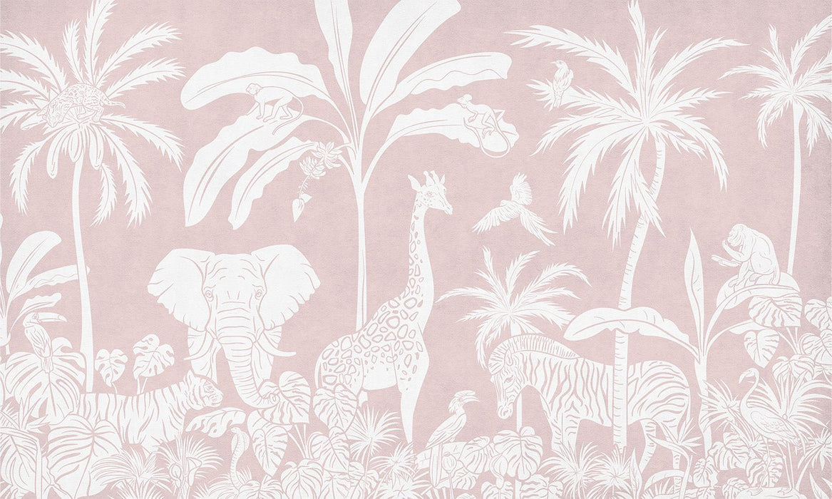 Children's wallpaper safari monochrome pink