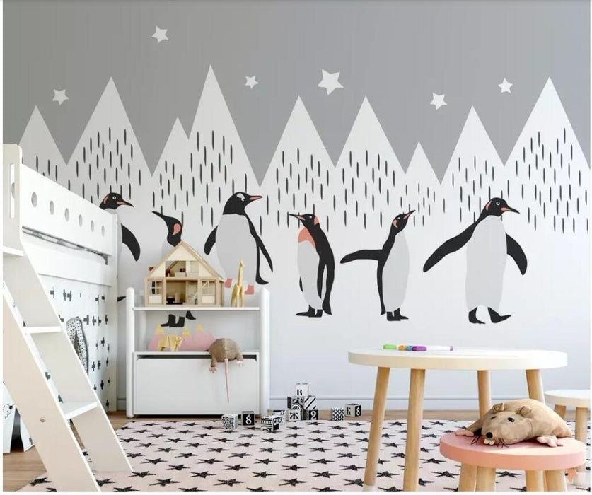 Bring in softness and tenderness in your child's room with this crunchy wallpaper in Scandinavian colors and baby penguins. Tender tender watercolor patterns will seduce your child in the blink of an eye. Suitable for little boys and girls rooms. Easily create the imaginary world that he has always dreamed with our wallpaper with your measurements.