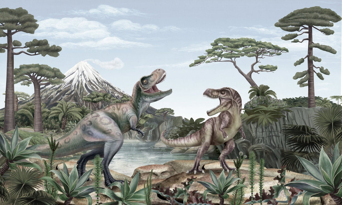 With our dinosaur world wallpaper, transform your child's or teenager's bedroom or playroom into a veritable prehistoric world. With this panoramic dinosaur wallpaper, adventure is just around the corner!