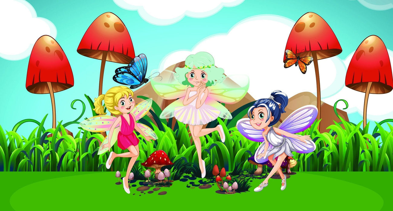 Our dreamy fairies wallpaper will immerse your child in the fairytale world of these imaginary, magical creatures. Godmother the Fairy will try to make wishes come true in this green and colorful XXL wall decor.