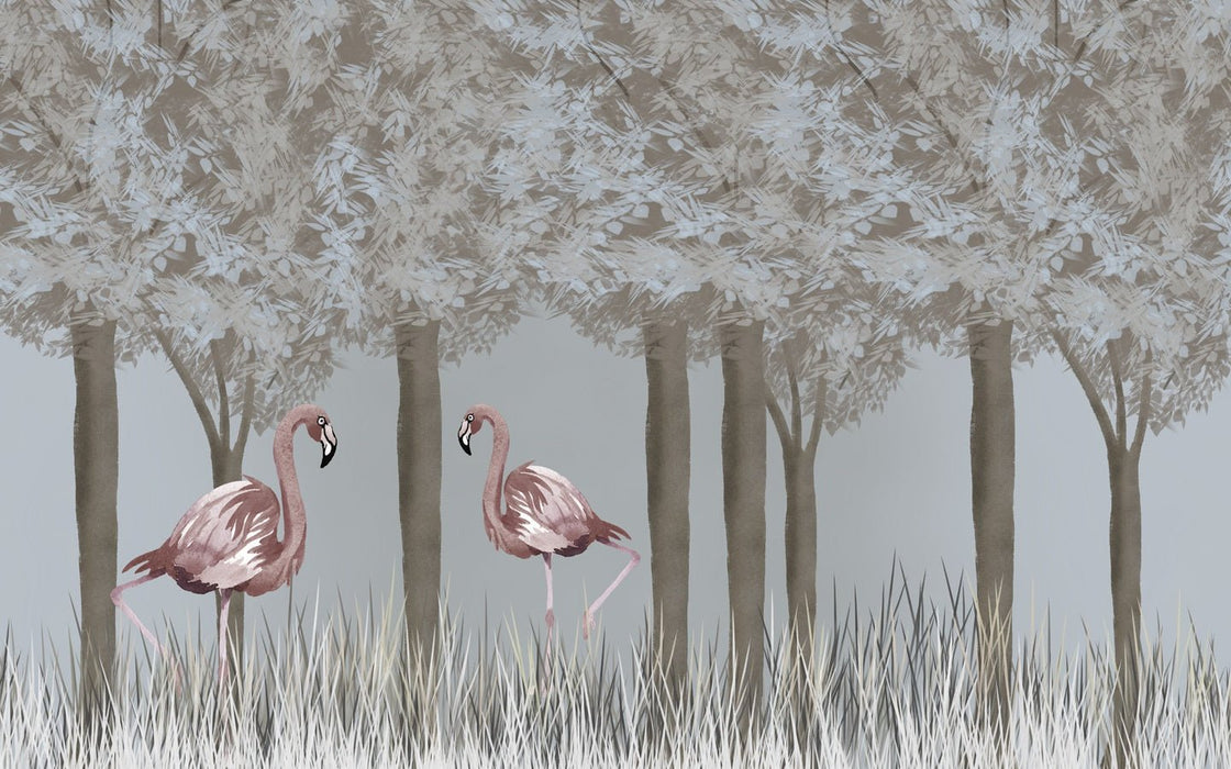 Let yourself be transported by our enchanted pink flamingo wallpaper. This elegant wall tapestry is ideal for a bedroom, living room or office. This wall fresco is both soft and characterful. This made-to-measure panoramic wallpaper will make your interior unique and soothing. A single wall panel to personalize your room.