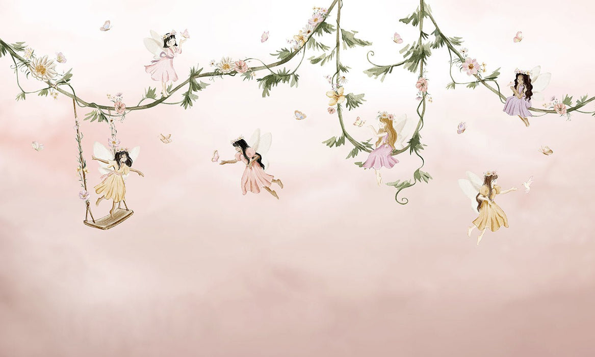 Our fairy godmothers wallpaper is the perfect way to decorate your baby's nursery. A soft and touching wallpaper to watch over your child at all times. Our panoramic baby wallpaper features fairy godmothers, to watch over your newborn. An enchanted world for baby to feel safe and secure in his crib and bedroom.
