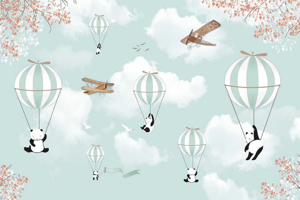 Bring in softness and tenderness into your child's room thanks to this bunny bunner wallpaper, soft colors and pandas patterns. Tender patterns will seduce your child in the blink of an eye. Suitable for boys and girls rooms. Easily create the imaginary world that he has always dreamed with our wallpaper with your measurements. Buy a French and ecological wall decor for your child's room.