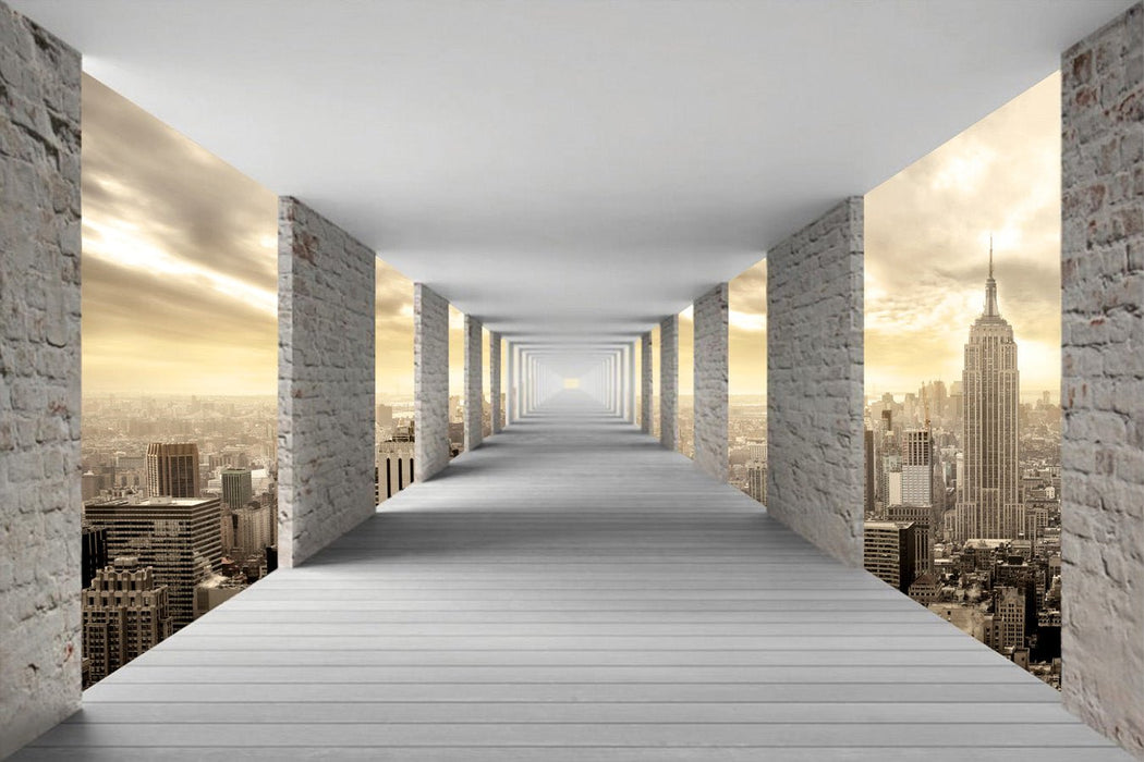 New York Hall's trumpet wallpaper creates perspective in your interior. Its clear tones and sobriety will bring a lot of light to your room. This wallpaper invites you to a fictitious 3D space that seems very realistic, a wall decor that will impress your guests. Easily create a unique interior with our tailor -made panoramic wallpaper.