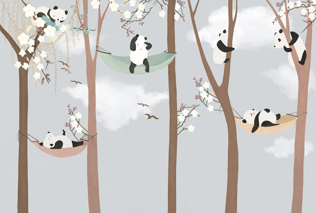 Bring in softness and tenderness in your child's room thanks to this Panda wallpaper in the air, with sweet colors and pandas patterns. Tender patterns will seduce your child in the blink of an eye. Suitable for boys and girls rooms. Buy a wall decor to easily create a dream baby room. Our panoramic wallpapers are eco-responsible, healthy for your interior and for the planet.