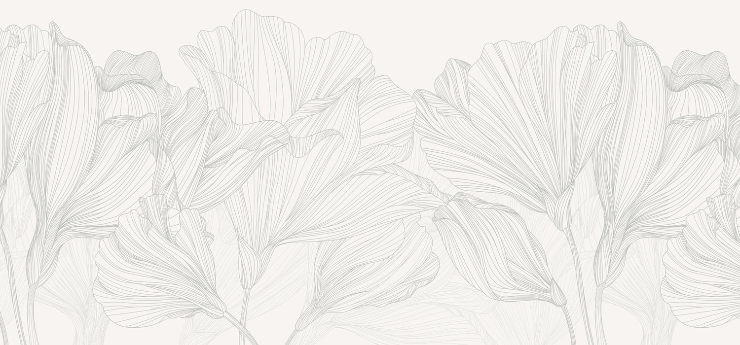 Exhilarating, twirling and artistic, this grey and white waltz of flowers panoramic wallpaper is an original creation that will sublimate any interior. Whether in a living room, bedroom or office, this custom panoramic wallpaper will add luminosity, style and a sophisticated touch to your decor.