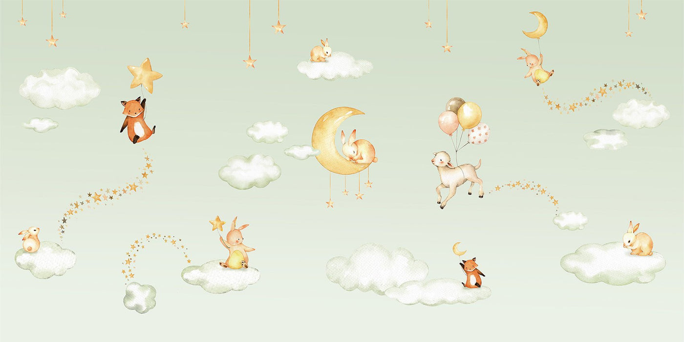 Buy your baby wallpaper online, and decorate your child's bedroom with taste and simplicity. The clouds and animals motifs on this wallpaper are endearing.
