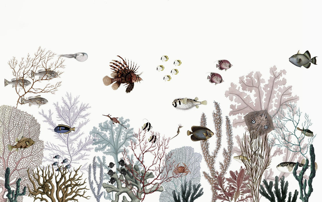 Reef and coral wallpaper plunges us instantly into the heart of the marine fauna, a captivating underwater world. With this wallpaper, let yourself be carried away by the bewitching beauty of the seabed, adorned with a dazzling variety of exquisitely shaped corals. A myriad of brightly colored fish dance among the corals, creating a natural spectacle that will expand your child's marine knowledge. Your child's adventurous side is sure to be awakened!