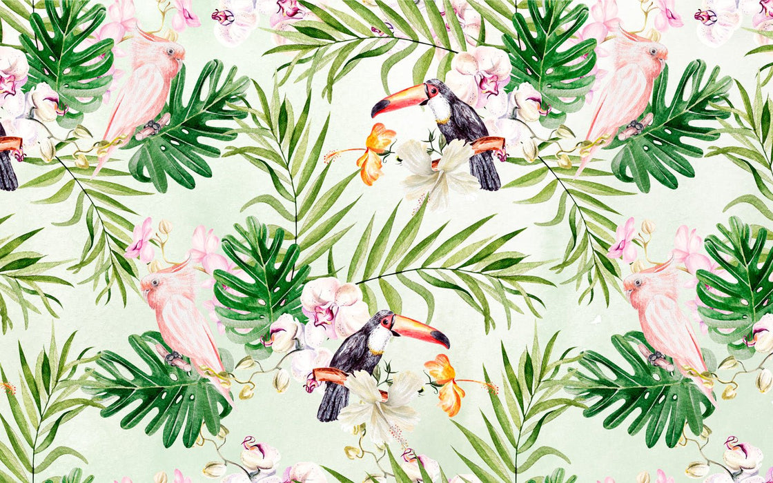Toucan & Exotic Touch wallpaper will transport you to the heart of arid nature. A touch of nature in your home. Ideal for a living room, bedroom or office, this wallpaper will bring a bright, exotic touch to your interior. Easily create a unique interior with our custom panoramic wallpaper.