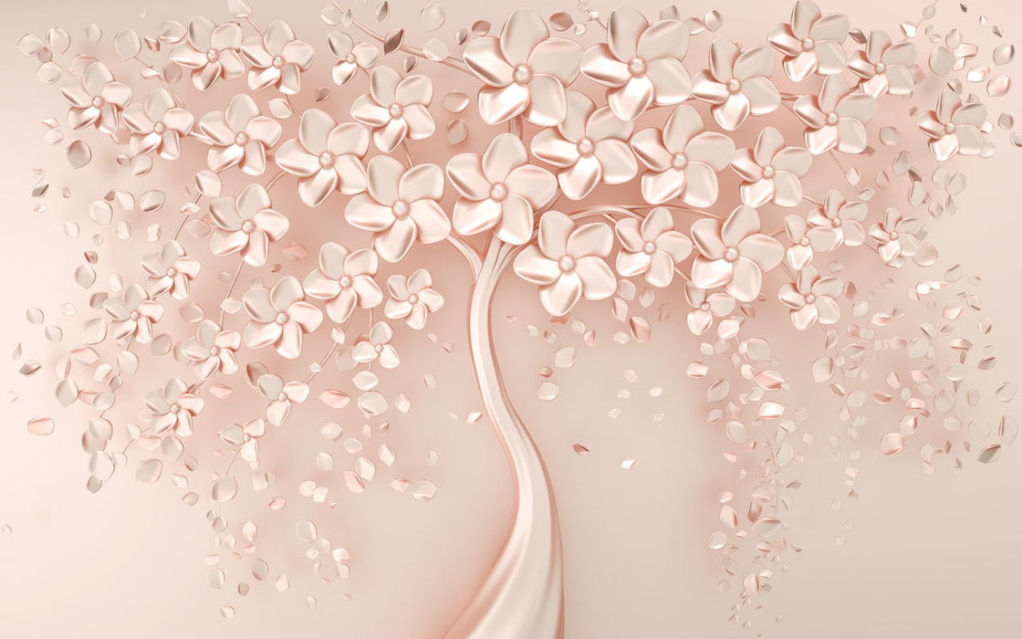 Tree 3D Rose Gold trompe l'oeil wallpaper adds perspective to your interior. Ideal for a living room, hallway or bedroom, thishis mural invites you into a fictitious 3D space that looks very realistic. A wall decor that will impress your guests. Easily create a unique interior with our custom-made panoramic wallpaper.