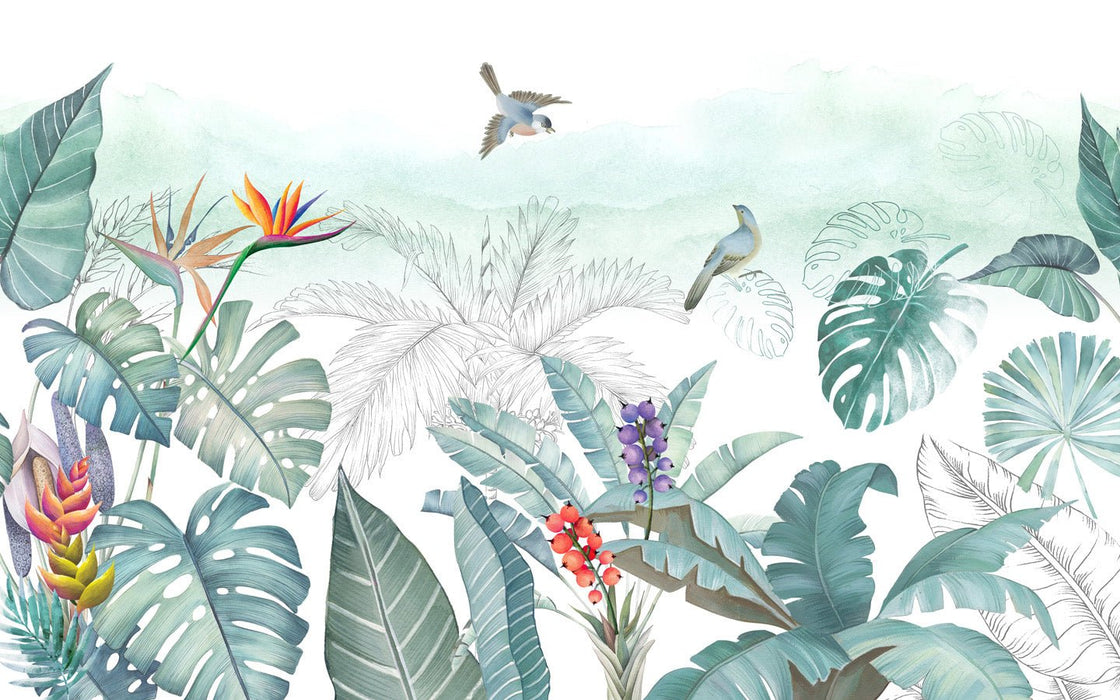 Végétal & Bird Prestige wallpaper is a fusion of the pure design of natural motifs and the softness of watercolor. The birds will add a poetic note to your wall decor. Ideal for a living room, bedroom or hallway, this wallpaper will add a bright, sophisticated touch to your interior. Easily create a warm ambience with our custom-made wallpaper.