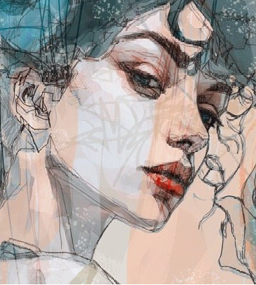 Papier Peint Visage Féminin Blue Rose - H200cmx L180cm - Matière Pré-Encollé