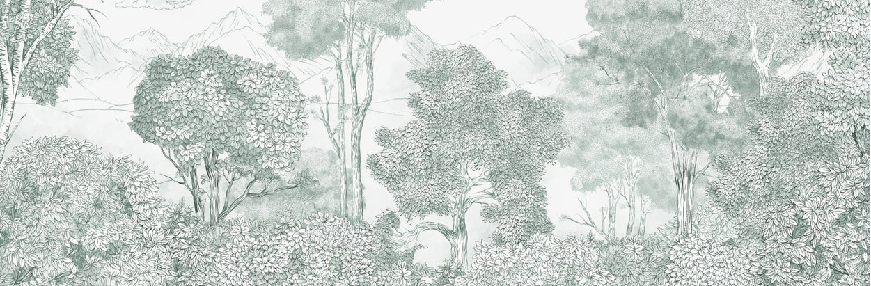 Panorama-Tapete Wälder und Berge grün