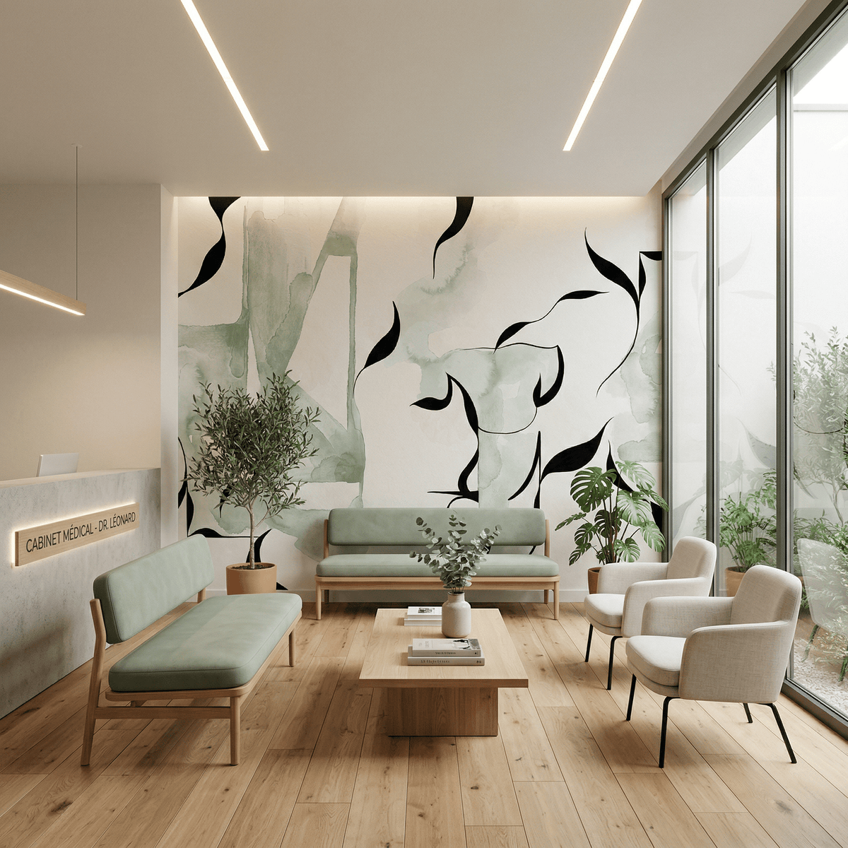 Pensé pour les projets d’architecture intérieure et les univers premium, Abstract Green Flow s’intègre parfaitement avec des matériaux nobles comme le bois, le marbre, le laiton ou encore les finitions minérales. Ce papier peint haut de gamme permet de structurer visuellement l’espace tout en créant une atmosphère apaisante et sophistiquée.