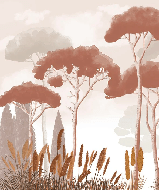Papier peint cyprès pins et herbes de la pampa terracotta