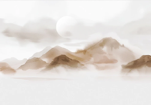 Papier peint montagnes voilées – Lueur sépia