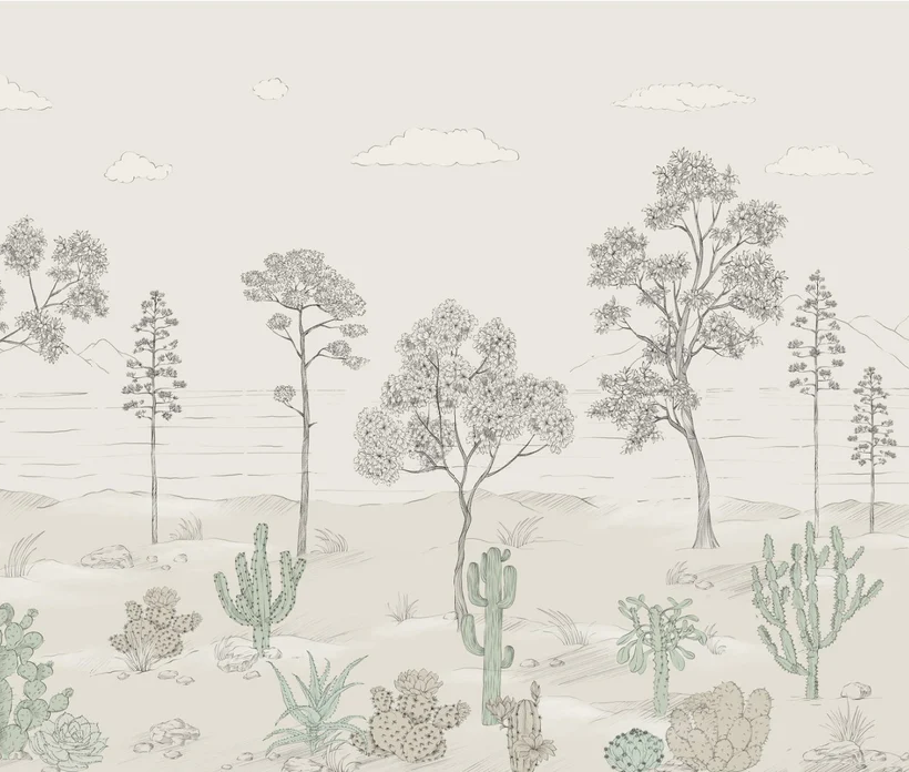 Papier peint oasis cactus tropical vert