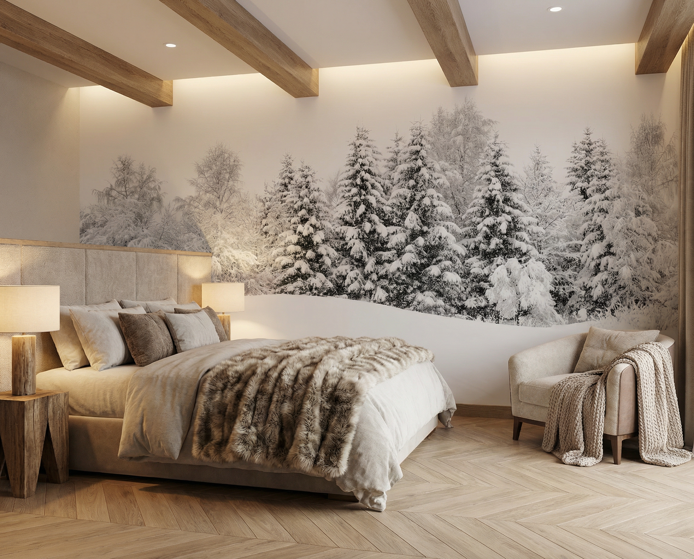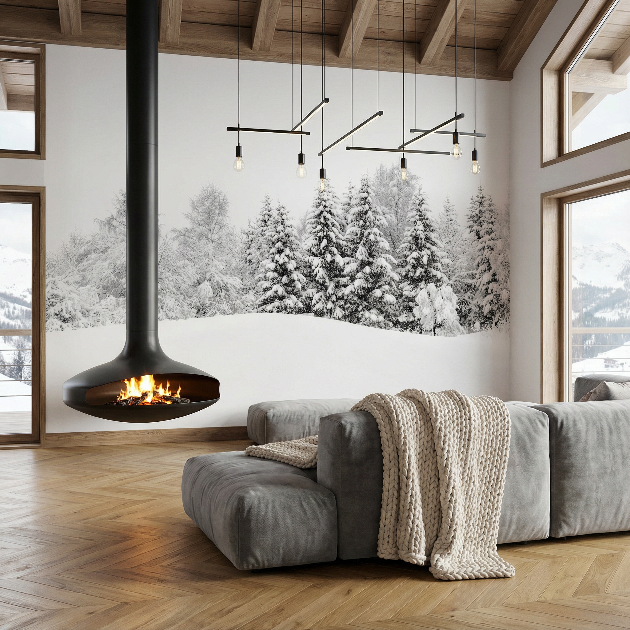 Idéal pour créer une ambiance chaleureuse et cocooning, ce décor mural transforme immédiatement votre salon, chambre ou chalet en un espace élégant et apaisant. Grâce à sa haute résolution et à l’impression premium, chaque détail ressort avec une profondeur incroyable, donnant la sensation d’ouvrir une fenêtre sur un paysage montagnard authentique.