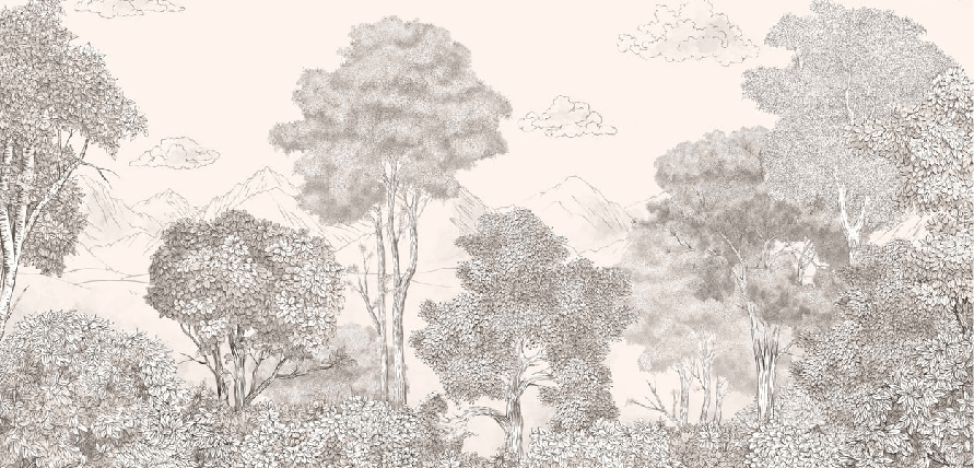 Papier peint panoramique Forêts et Monts Crayonnés Beige