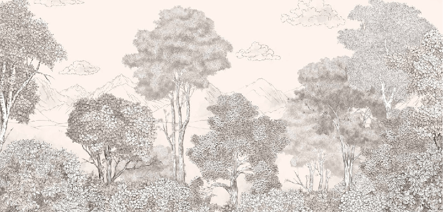 Papier peint panoramique Forêts et Monts Crayonnés Beige