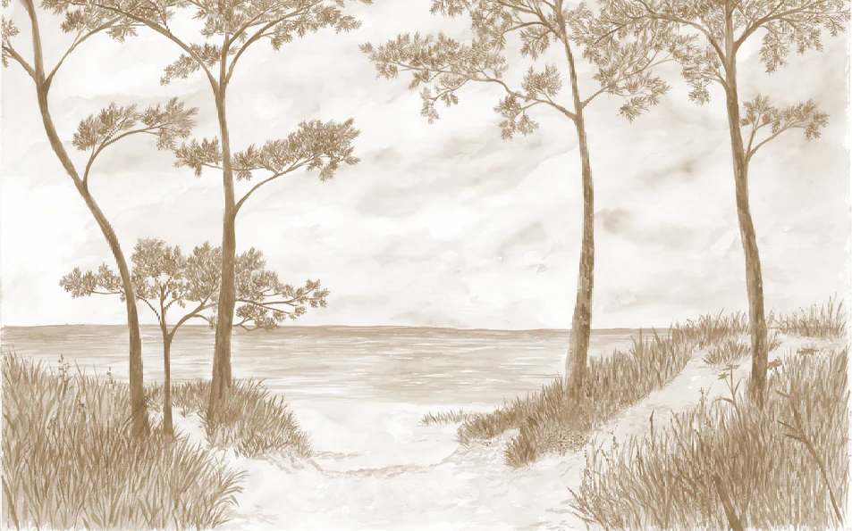 Papier peint Pins maritimes et dunes - Sépia
