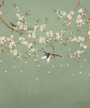 Papier peint sakura zen vert