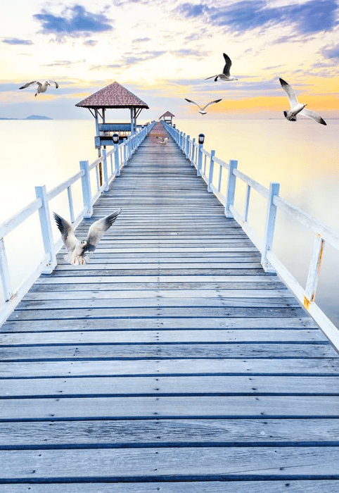 Papier peint trompe l’œil Ponton vue sur mer