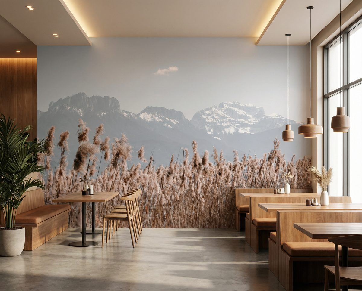 Its black and white design enhances every contour, playing with light to create an elegant and timeless atmosphere. Ideal for timeless wall decoration, this mountain wallpaper fits perfectly in a living room, bedroom, office, hotel lobby, or restaurant, bringing a touch of escape and serenity.