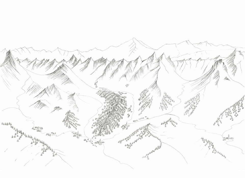 With En Piste, explore the La Clusaz ski area as you've never seen it before. This high-end artist wallpaper, hand-drawn in black and white, reinvents the Alpine slopes through a graphic and poetic vision.