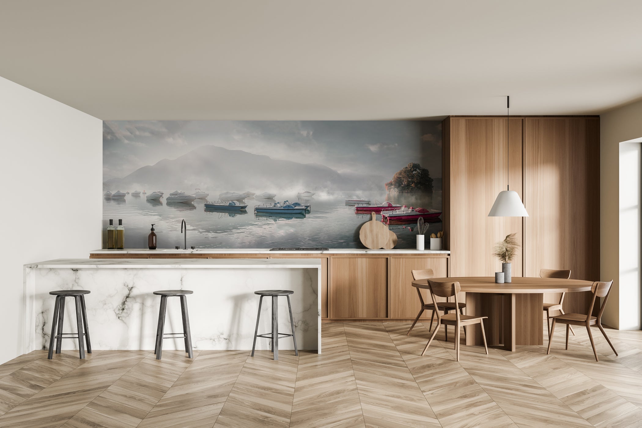 Sublimate your establishment with this wallpaper restaurant a cool morning at vintage Lake Annecy. This panoramic wallpaper decorates your establishment with charm. An exceptional realistic vintage wallpaper. This photo wallpaper will become the identity of your establishment. Unique and timeless, this made-to-measure Annecy wallpaper will add style and cachet to your establishment. Our trendy wallpapers are fireproof and comply with mandatory M1 safety standards. MuralConcept is a French brand of made-to-measure panoramic wallpaper. Our teams are on hand to help you with your wall decorating project. Our wallpapers can be adapted to suit your corporate identity. Buy your panoramic restaurant wallpaper online at MuralConcept.fr.